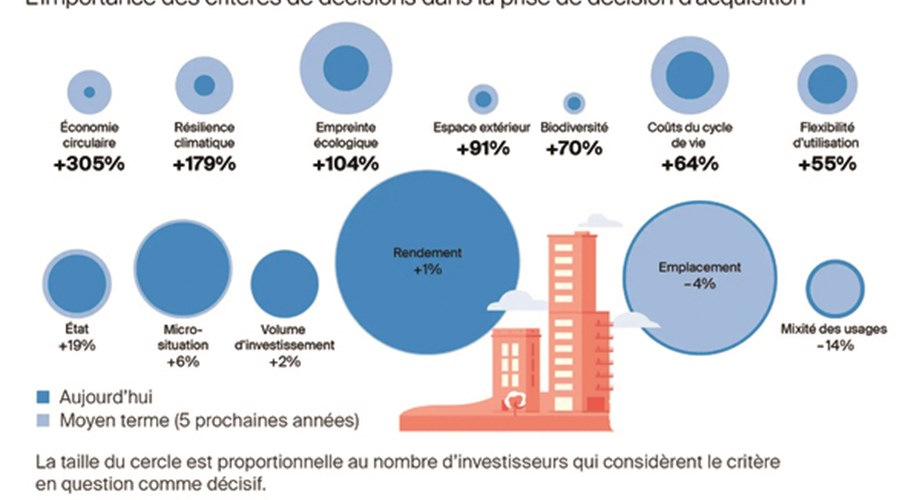 Selon un sondage réalisé par le cabinet Wüest Partner auprès des décideurs de plus de 300 entreprises qui investissent dans l’immobilier, les thèmes de durabilité gagneraient en importance dans le cadre des acquisitions.