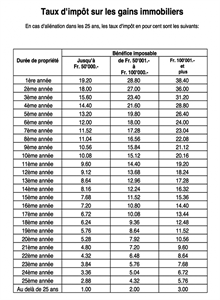 Lors de la vente d’un immeuble ou d’un terrain faisant partie de la fortune privée, un impôt spécial est dû: l’impôt sur les gains immobiliers. Le montant effectif de l’impôt à payer lors de la vente de votre propriété dépendra essentiellement de la loi fiscale cantonale, en règle générale, la durée de la possession et quelques fois le montant de la plus-value.